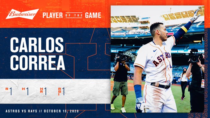 Carlos Correa conectó un jonrón en la parte baja de la novena entrada para que los Astros de Houston dejaran tendidos en el terreno sus rivales, con lo que obligan a un sexto juego ante los Rays de Tampa Bay, en la Serie de Campeonato de la Liga Americana.