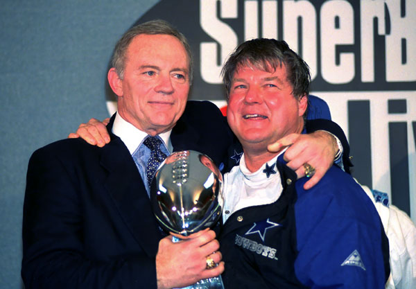 Con este cambio generacional, Jones trajo a un coach experimentado en el colegial, Jimmy Johnson y lo demás es historia… En solo cuatro años la mancuerna construyó al equipo más poderoso de la NFL y ganó el bicampeonato de 1992-1993. Johnson salió del equipo por una disputa de egos con Jones y aun así, el equipo repitió el título en 1995. La franquicia fue la primera en conquistar tres Super Bowls en cuatro años.