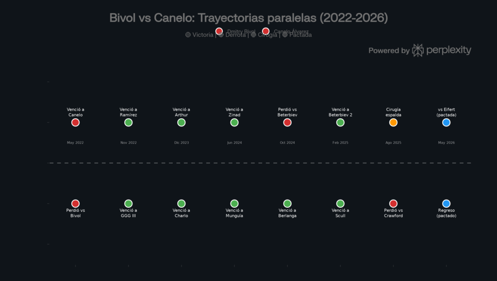 Bivol se operó de una hernia de disco lumbar en agosto de 2025. La lesión lo aquejaba desde hacía más de una década. La rehabilitación tomó seis semanas entre San Petersburgo y Dubái. Su regreso está pactado para el 23 de mayo de 2026 contra Michael Eifert.
